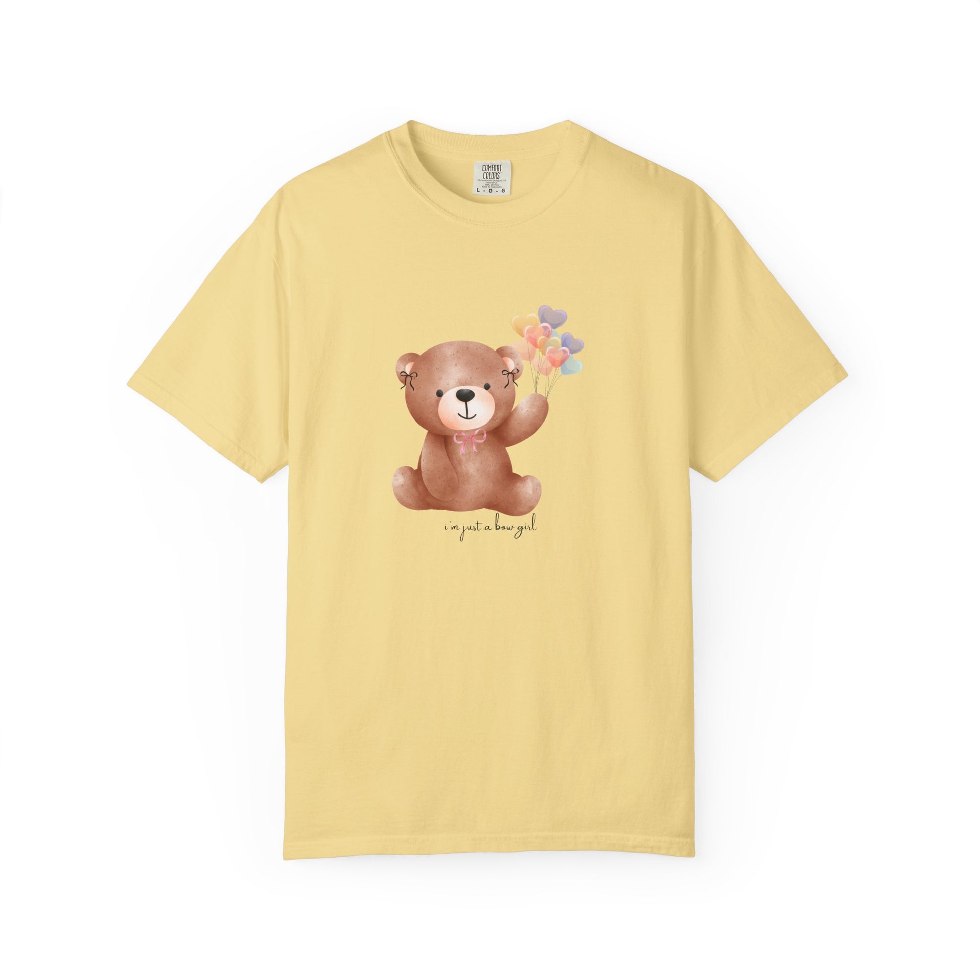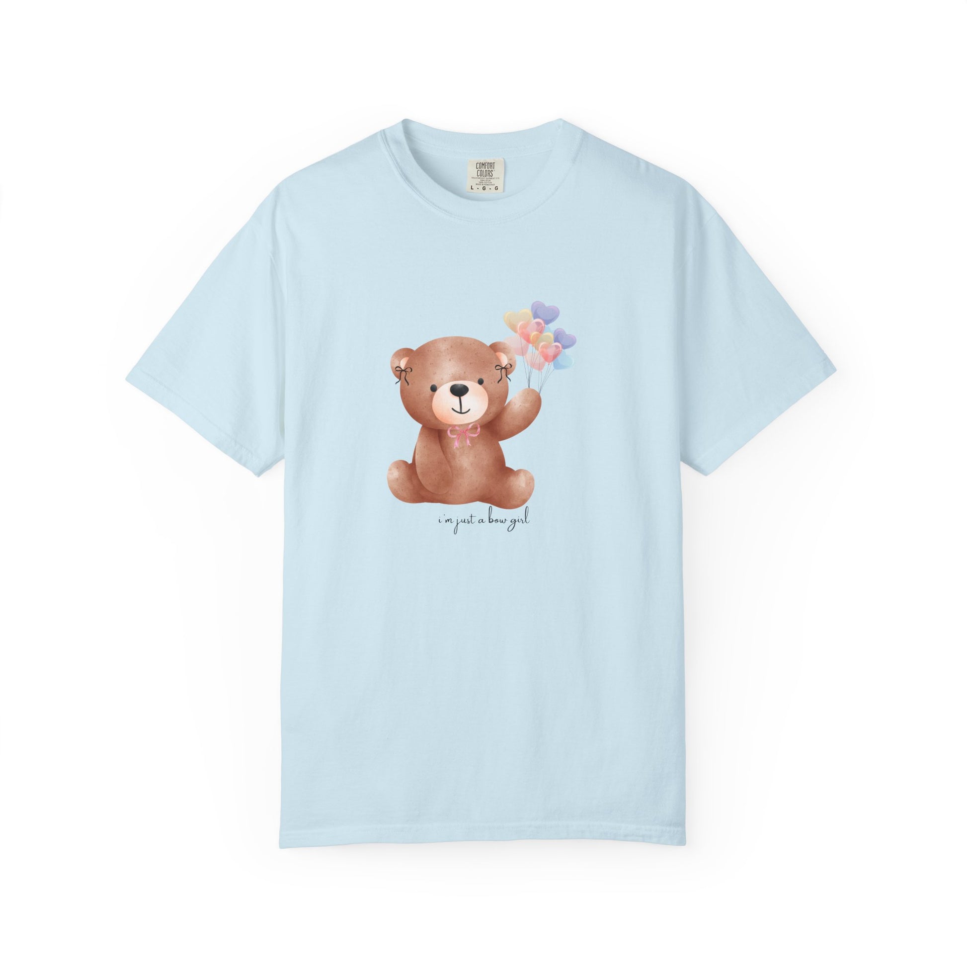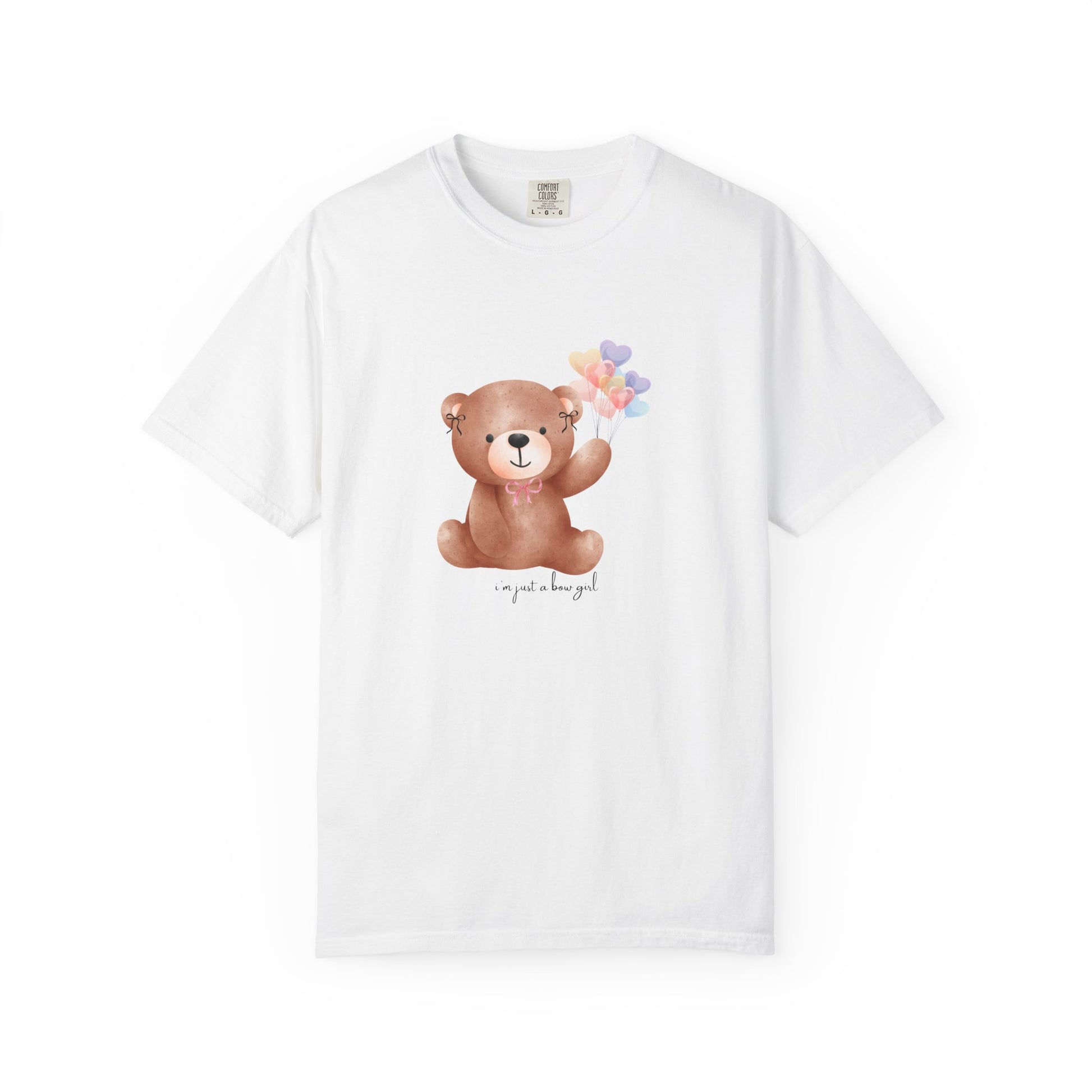 This coquette bear holding balloons with cute bows T-shirt is giving off a playful and whimsical vibe. Perfect for casual wear or a fun outing, this T-shirt is great for animal lovers and those who enjoy cute and quirky designs. Ideal for birthdays, anniversaries, and everyday wear.